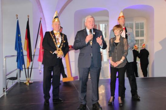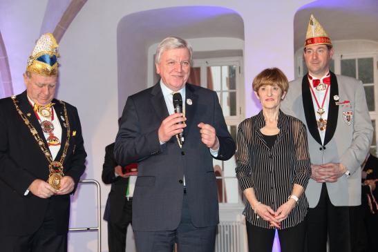 Am Samstag war das Kloster Eberbach ganz in der Hand der hessischen Narren. Mehr als 500 Repräsentanten des närrischen Brauchtums aus dem ganzen Land waren der Einladung des Hessischen Ministerpräsidenten Volker Bouffier und seiner Frau Ursula gefolgt. Mit ihrer guten Stimmung zeigten Prinzessinnen, Prinzen und der närrische Hofstaat, dass sie für die Fastnachtskampagne bestens gerüstet sind. Der Regierungschef bedankte sich bei den über hundert Prinzenpaaren, darunter auch 24 Kinderprinzenpaare, und ihrem Hofstaat für den großen ehrenamtlichen Einsatz aller hessischen Fastnachter. Sie alle sind Mitglieder örtlicher Vereine, die der Interessengemeinschaft Mittelrheinischer Karneval oder dem Karnevalverband Kurhessen angehören.