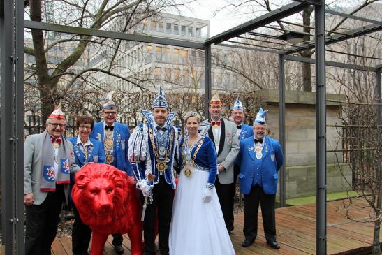 Zunächst fuhr die Delegation zur Hessischen Landesvertretung um dort einige Fotos zu machen. Zur Überraschung aller wurden wir von der Leitung der Landesvertretung zu einem Fototermin eingeladen, den das Hessische Prinzenpaar natürlich gern wahrgenommen hat.