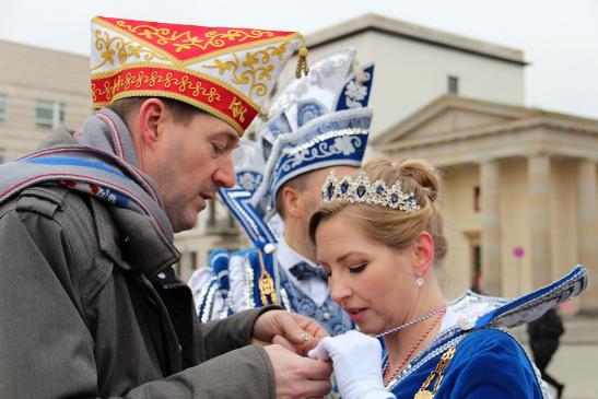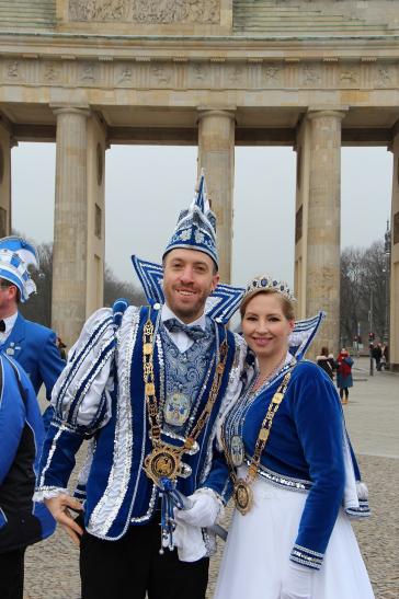 Danach ging es weiter zum Brandenburger Tor. Vor dem Brandenburger Tor intronisierte Verbandspräsident Heiko Rudolph für diesen Tag als das „Hessischen Prinzenpaar“. Viele Schaulustige blieben interessiert stehen und hielten, wie wir auch, als auf Fotos fest.