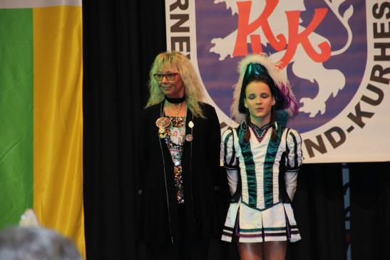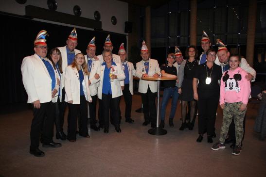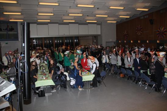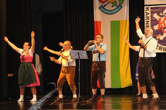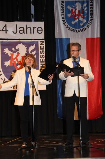 Nach dem Ausmarsch der Tollitäten wurde gemeinsam mit Gabi Töpperwein und Jörg Fuchs vom gastgebenden Borkener CC das Hessenlied gesungen.