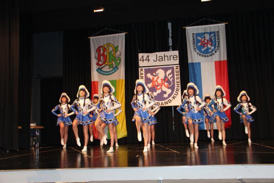 Im Rahmen eines kleinen karnevalistischen Jubiläumsprogramms erfreuten Tanzmariechen Hanna Krebs von der Abteilung Fasching der Freiwilligen Feuerwehr Bachrain, die Prinzengarde der Großenritter Carnevals Gemeinschaft 1949 Baunatal mit dem Marschtanz, die Olmesbarden vom Borkener CC, die Gemischte Garde von der KG TSC Herkules Kassel und Tanzmajor Marcel Lippert vom TV Sterbfritz mit ihren Beiträgen die zahreich erschienen Besucher des Ordensfestes 2017 im vollbesetzten Saal des Bürgerhauses. Für die Darbietungen erhielten die Aktiven tosenden und anhaltenden Beifall. Der Verband bedankt sich ganz herzlich für die Mitwirkung anlässlich des Jubiläumsfestes.