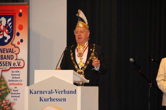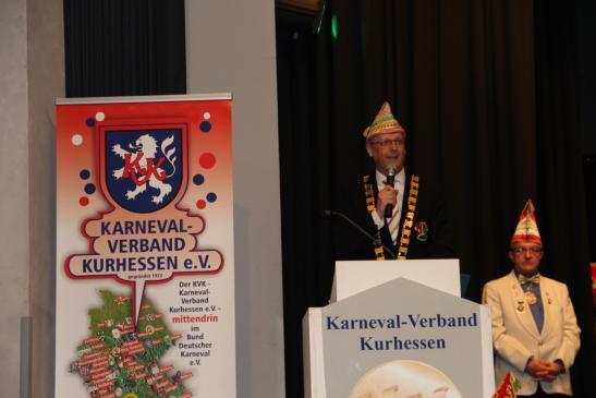Hierzu hatten sich hochkarätige Gäste angesagt. Aus der Politik fand der Regierungspräsident aus Kassel, Dr. Walter Lübcke, den Weg nach Borken. Die Stadt Borken war durch den stellvertretenden Stadtverordnetenvorsteher Horst Simmen vertreten. Auch der Präsident des Bund Deutscher Karneval e.V. (BDK), Herr Klaus-Ludwig Fess, sowie der Präsident der Interessengemeinschaft Mittelrheinischer Karneval e.V., Herr Dietmar Jerger, der Vorsitzende des Landesverbandes für den Karnevalistischen Tanzsport in Hessen, Markus Braun, und viele Präsidentinnen, Präsidenten und Vorsitzende der Mitgliedsvereine konnten durch Präsidnet Heiko Rudolph begrüßt werden.