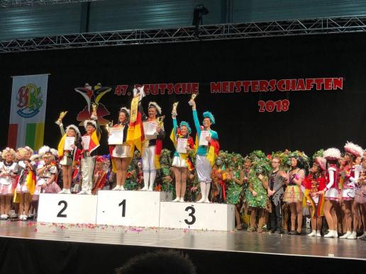 Bei den Starts bei den 47. Deutschen Meisterschaften im karnevalistischen Tanzsport am 10. und 11. März 2018 in Halle/Saale zeigten die Aktiven aus 4 Mitgliedsvereinen wieder ihr ganzes Können und erreichten zwei 3. Plätze und weitere gute Platzierungen in den Starterfelder der einzelnen Altersklassen und Disziplinen.